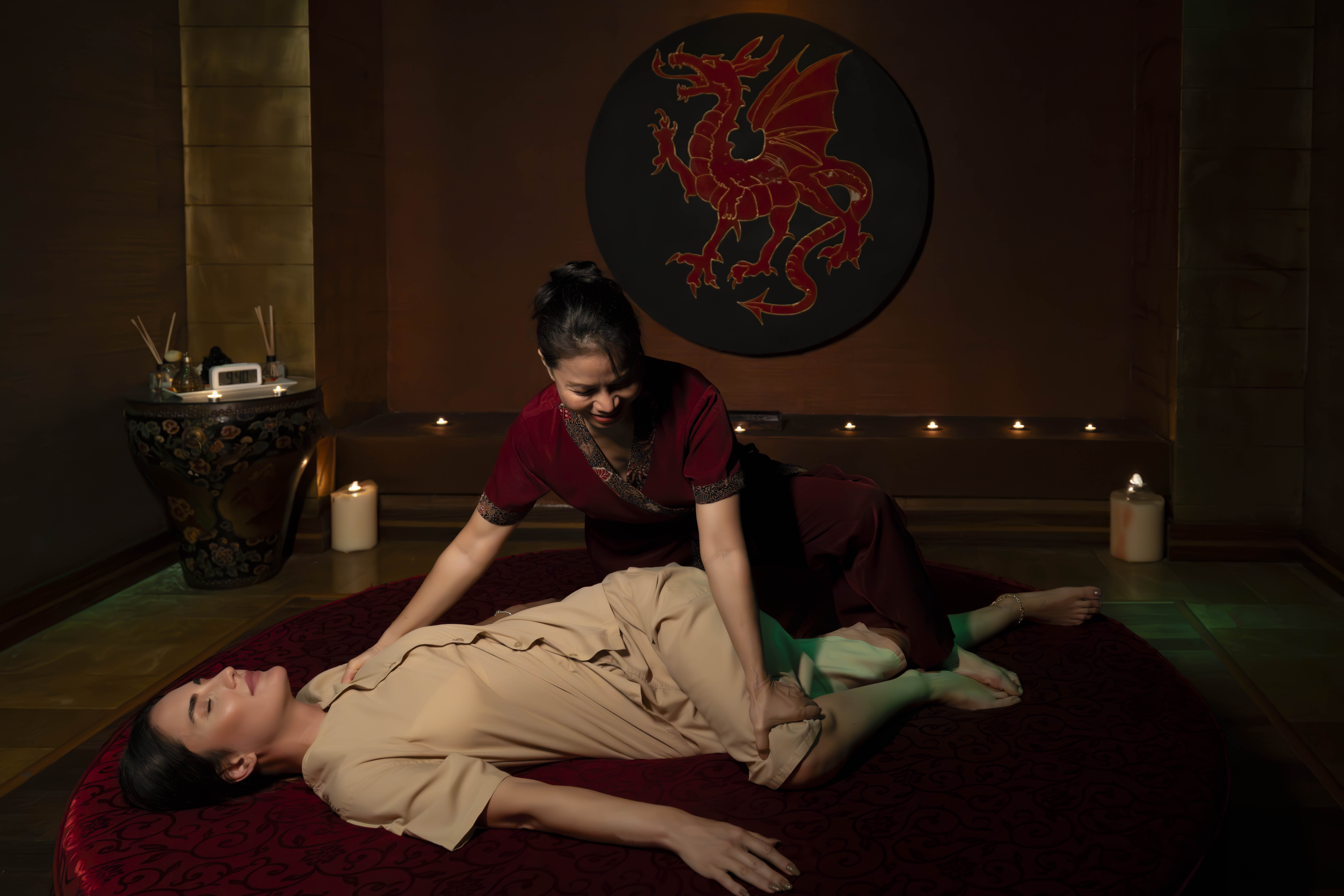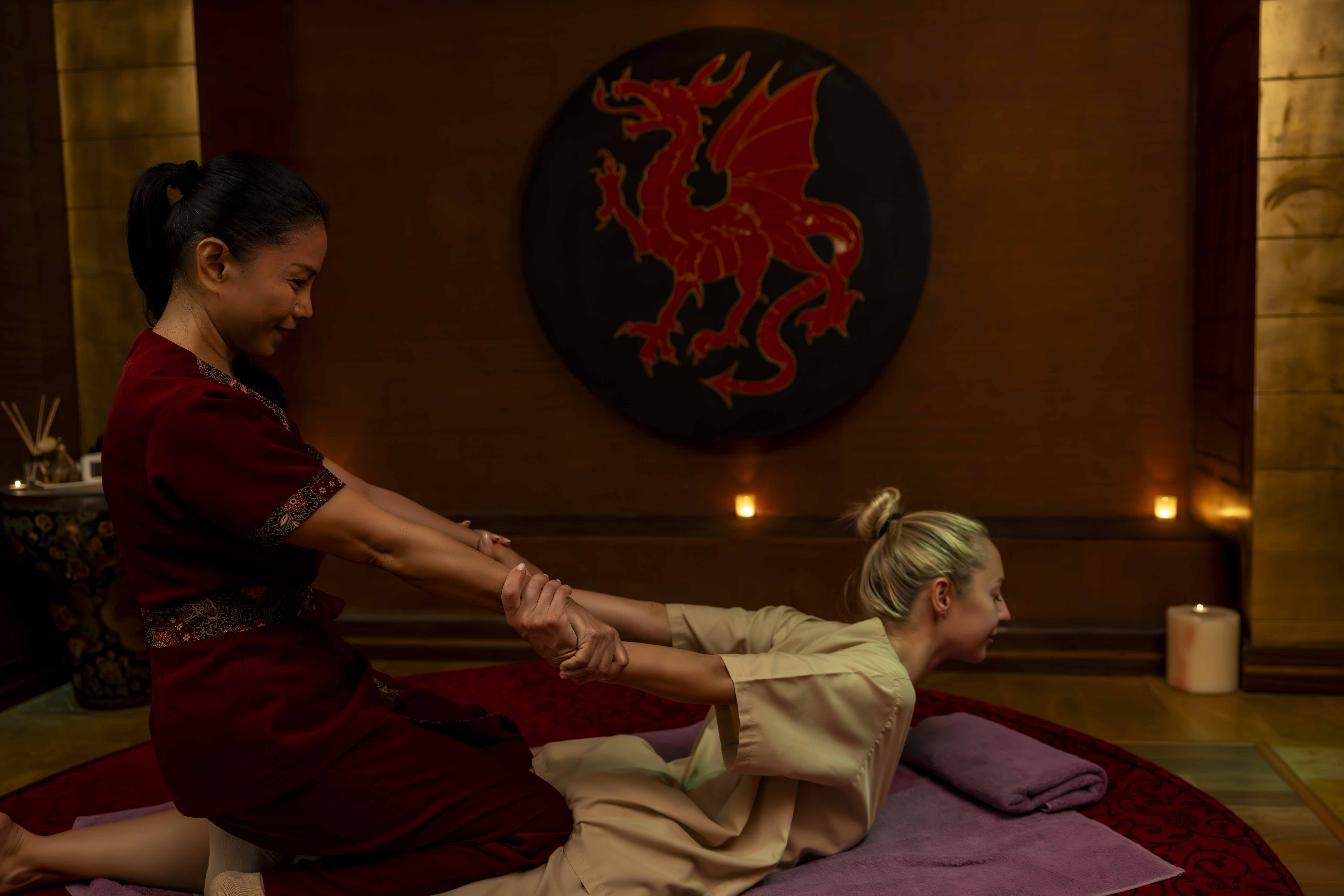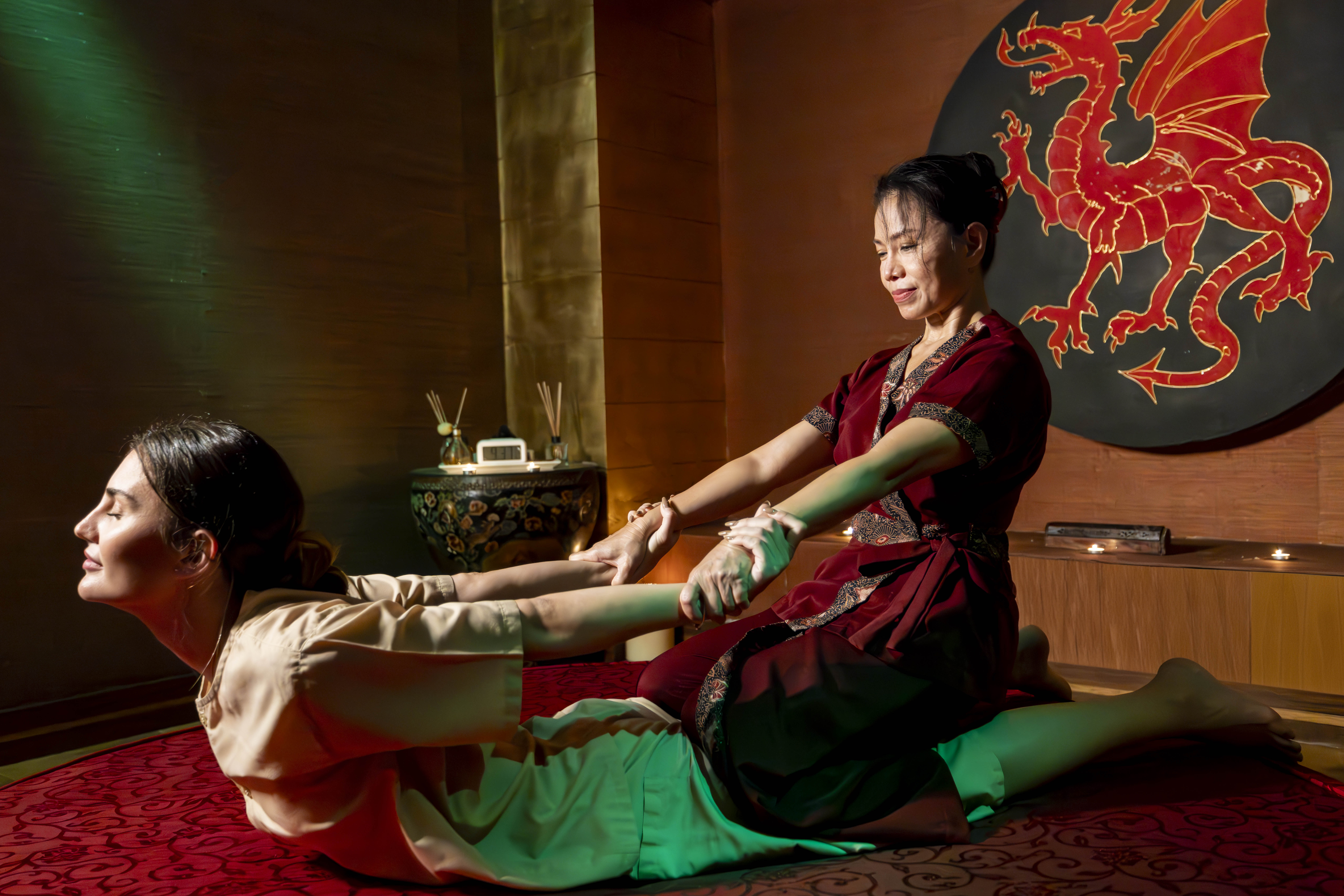 Thai massage, is a holistic system of health improvement, including a number of modalities, such as deep pressure on muscle tissue, passive exercises, reflexology, stretching, joint opening, activation of the flow of energy in the human body, acupressure. Does not require the using of oil..