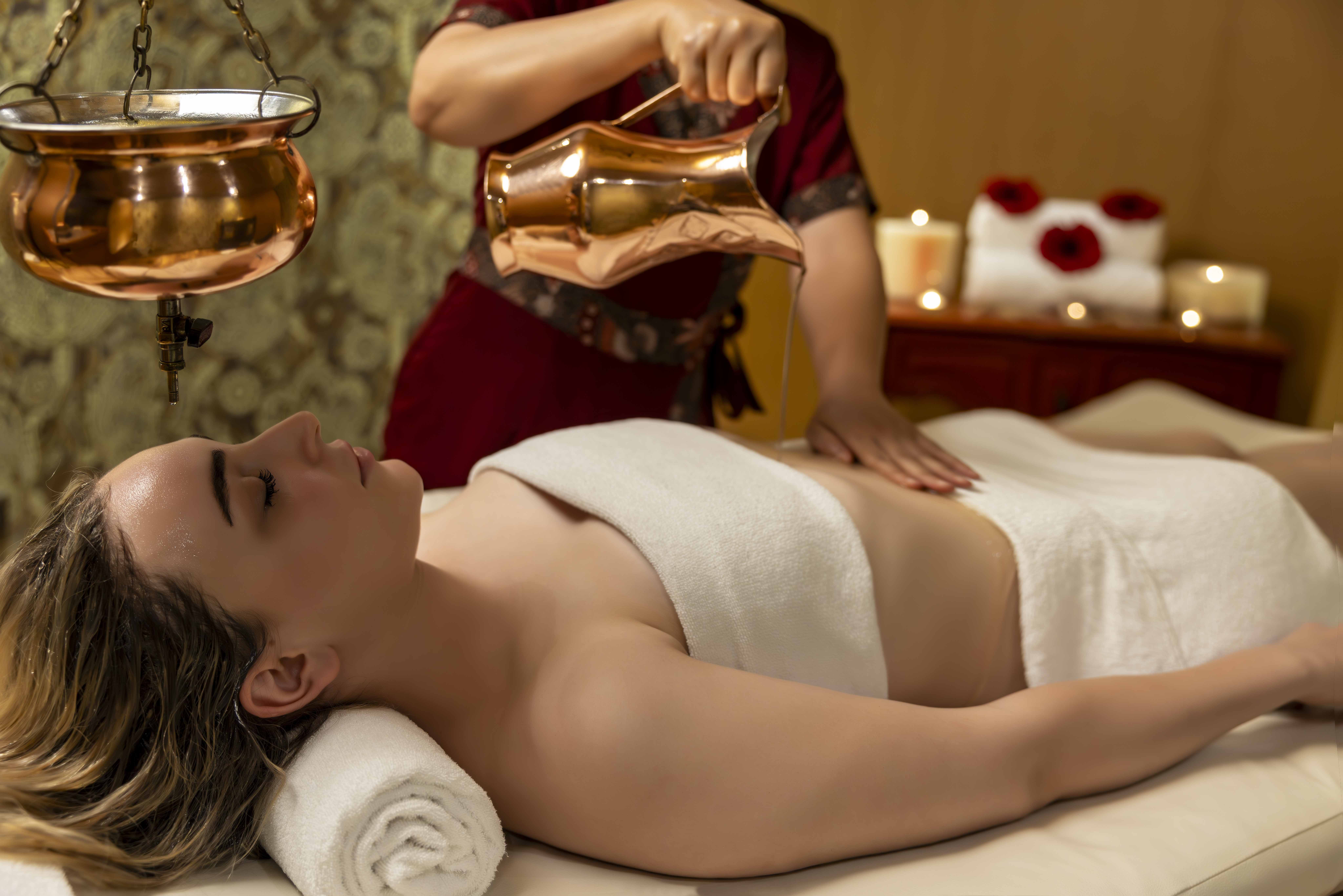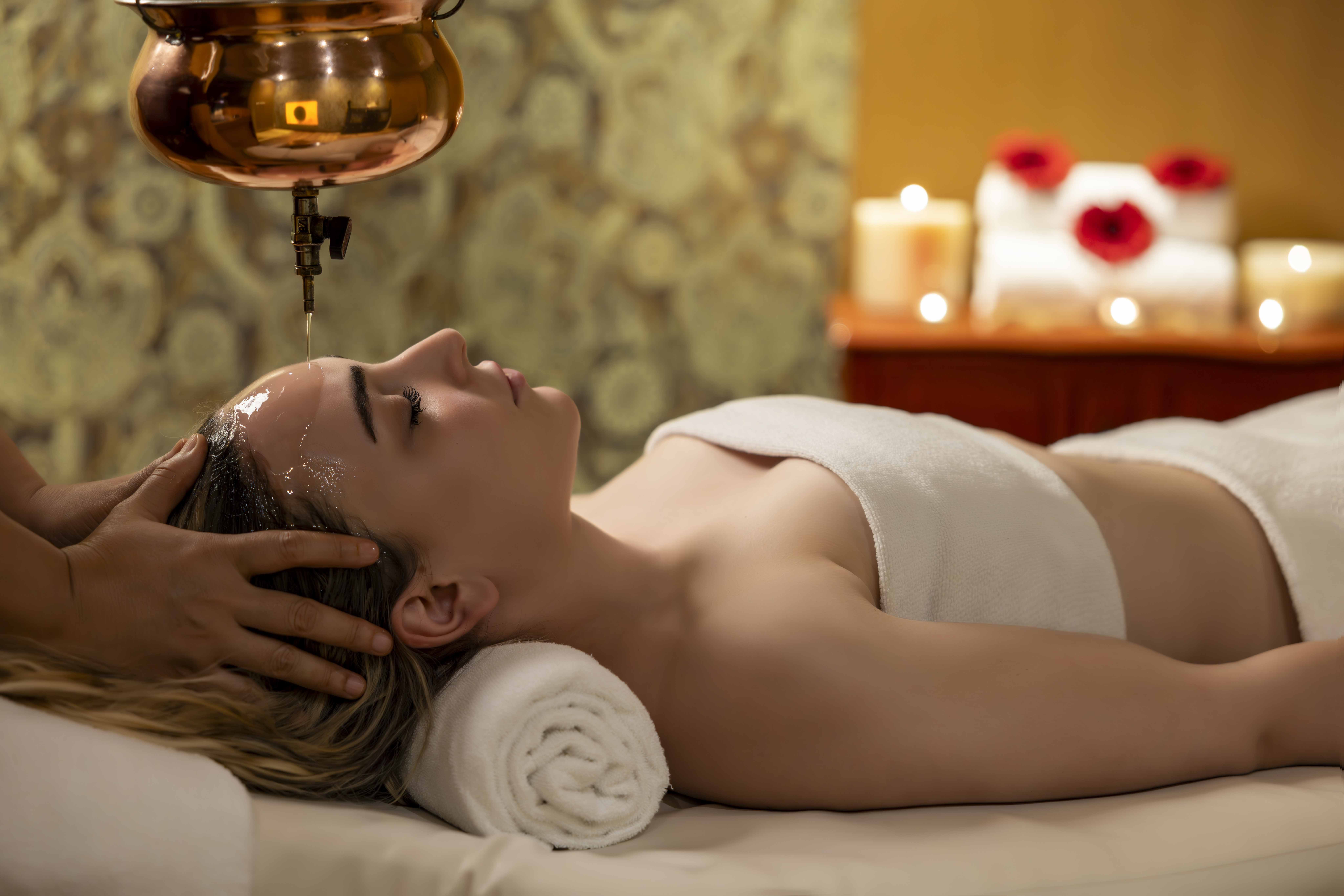 Massage promotes embodied and mental relaxation, getting rid of emotional tension, insomnia and headaches. Warm sesame oil is poured by thin stream into special points on the forehead, including the area of Ajna-chakra (the "third eye") and Sahasrara-chakra (the "crown chakra").