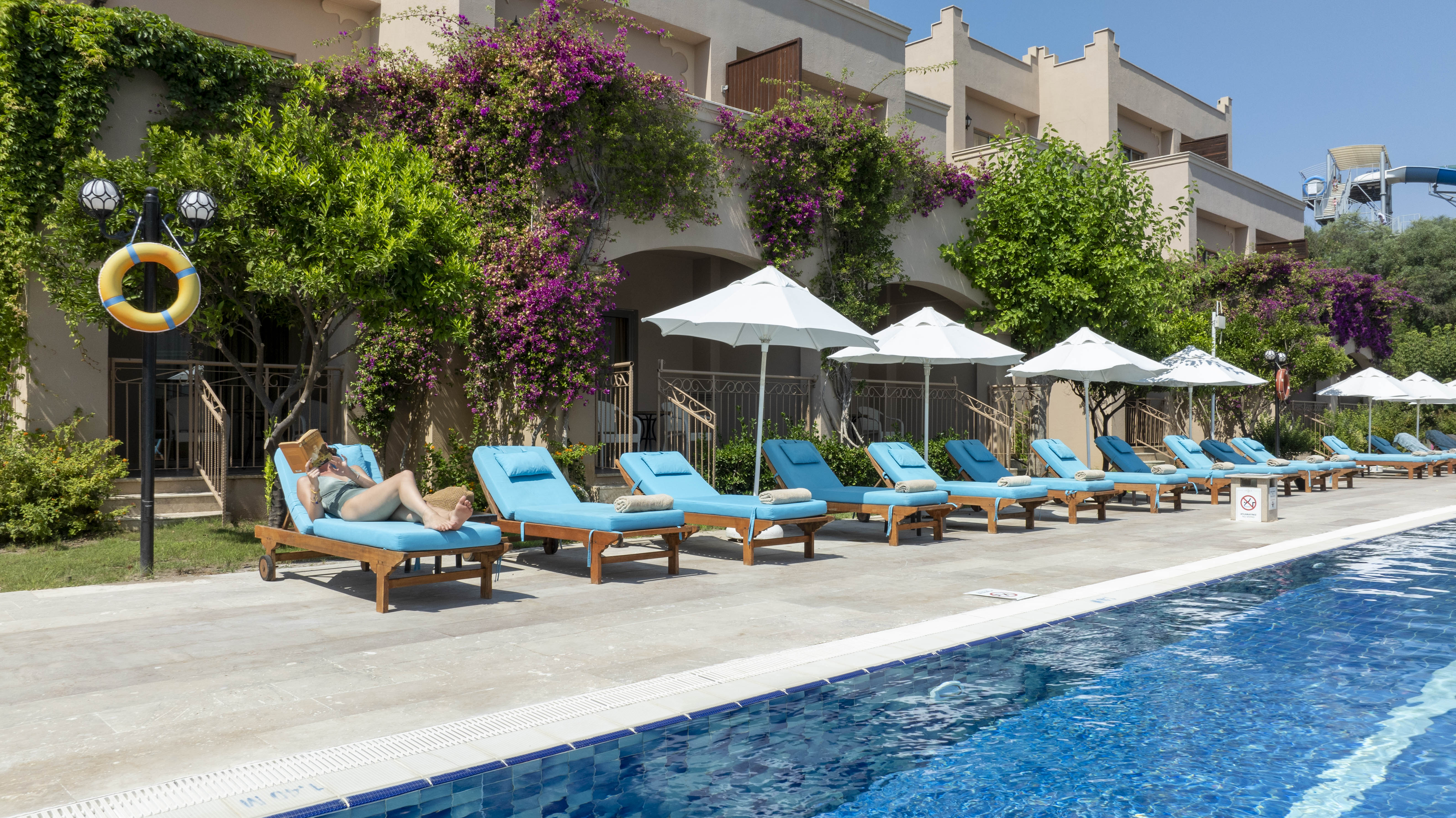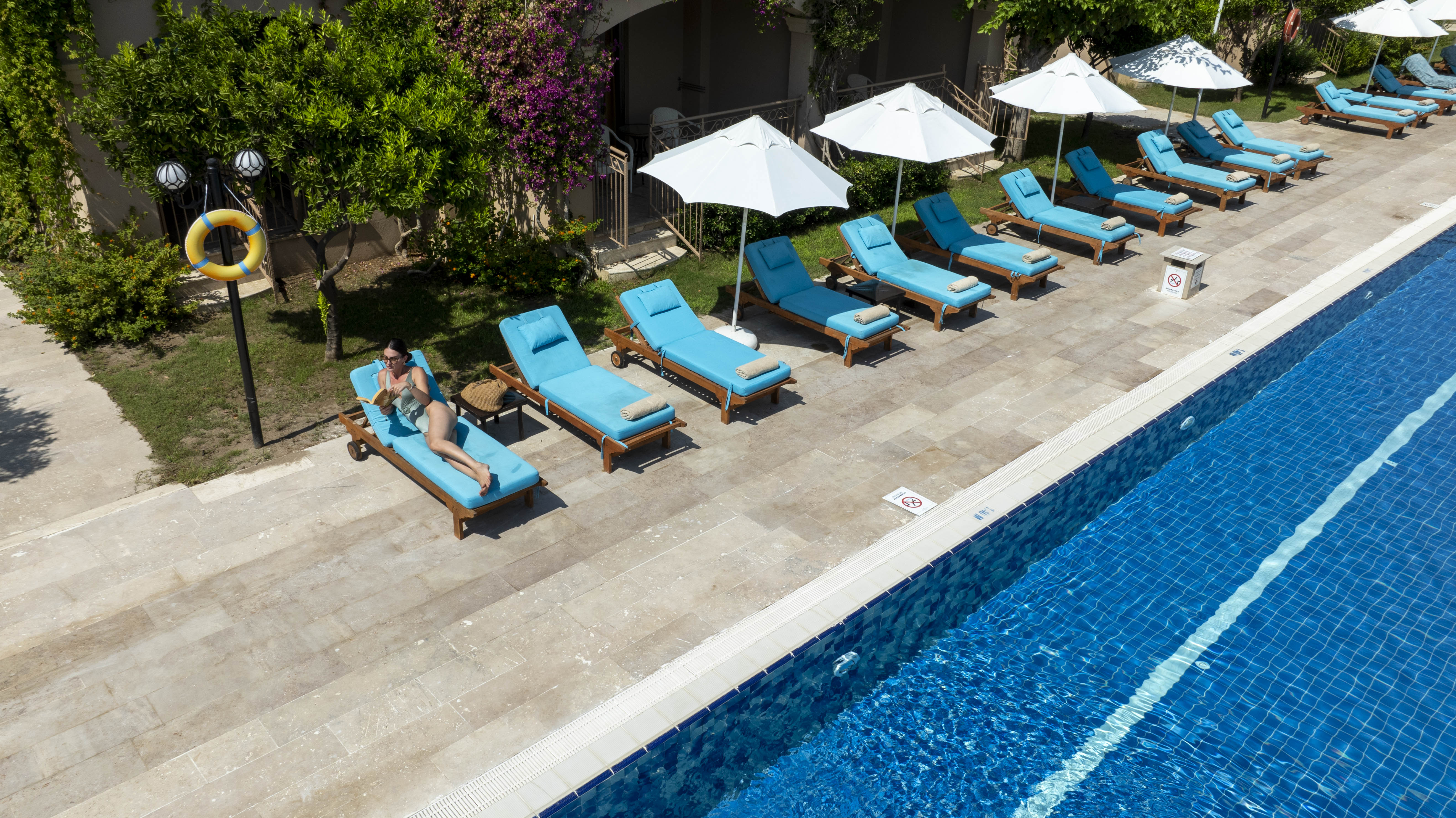 Бесплатные услуги: Для каждого номера предоставляются 2 индивидуальных шезлонга с зонтиком, где гостей ждут пляжные полотенца.