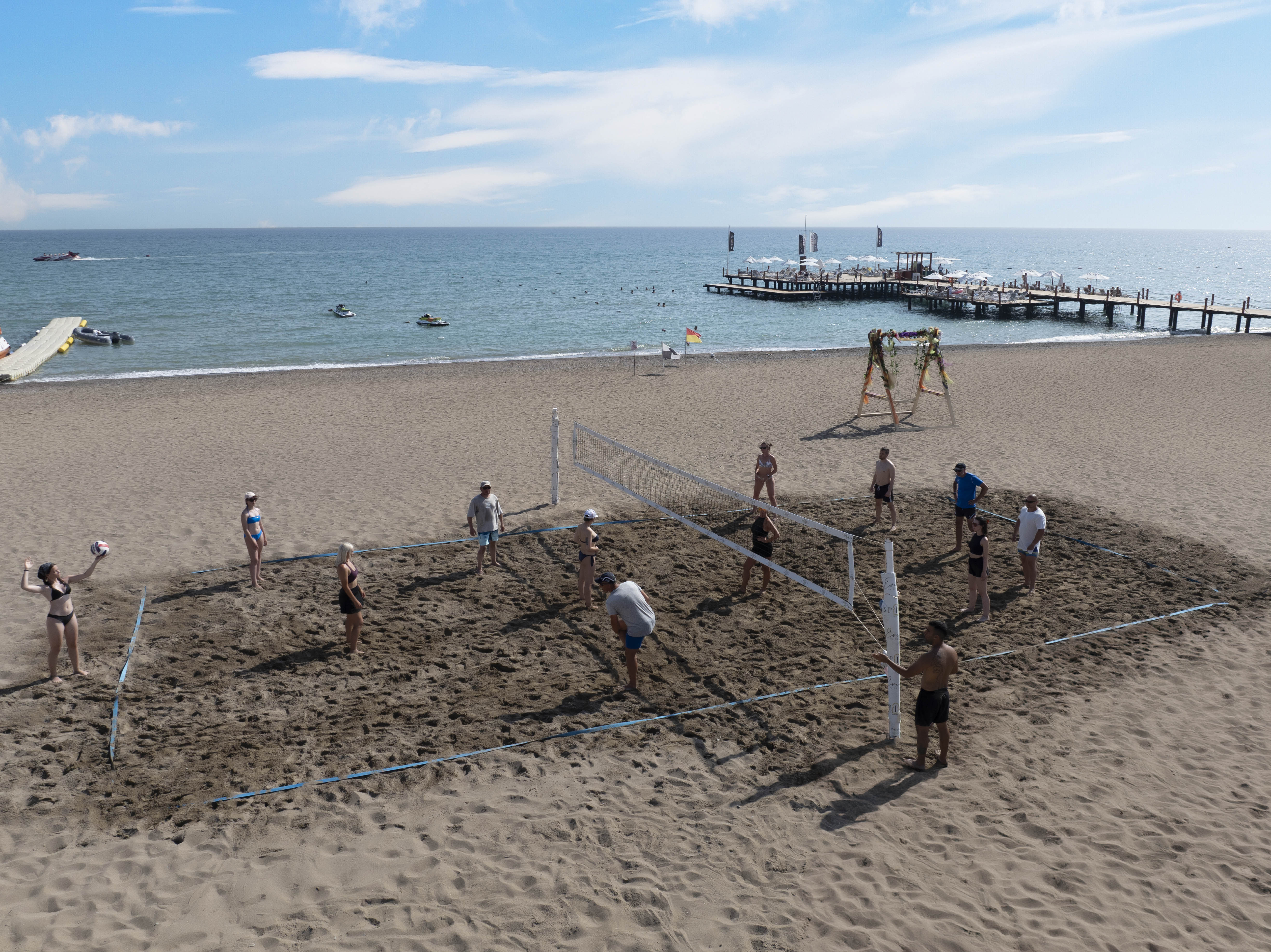 Denizin ve güneşin tadını çıkarırken aynı zamanda eğlenceli ve enerjik bir aktiviteye katılmak ister misiniz? O halde sizi her gün 10:30 - 16:30 saatlerinde düzenlediğimiz plaj voleybolu etkinliğimize davet ediyoruz!